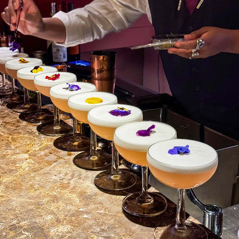 Every cocktail is created in-house using craft techniques – clarified milk punches, vacuum-pressure extractions, house-fermented cordials, and molecular foams. Some take days to make.